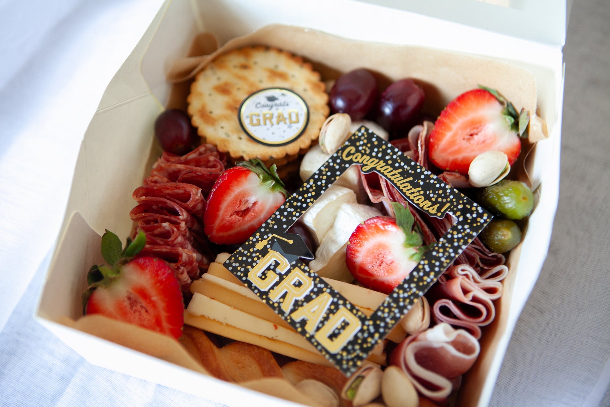 Celebrate the tassel without the hassle! Our Grad boxes feature cheese-cut numbers of the graduation year, school-coloured embellishments, and the cutest little grad hats you ever did see. Perfect for grad parties, family gatherings, or surprise drop-offs — skip the kitchen and savour this milestone the gouda way.